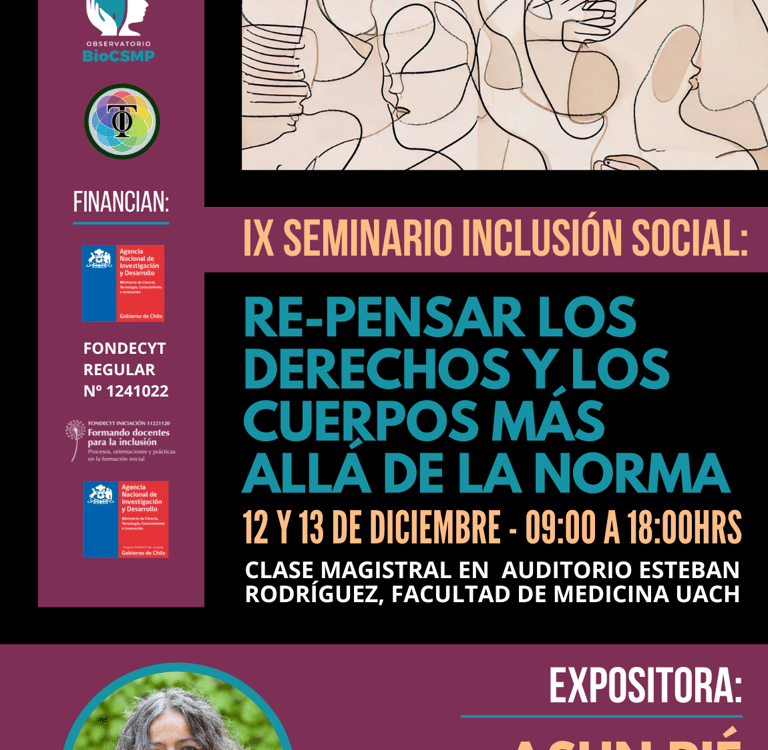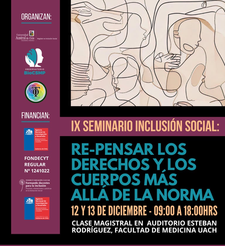 El Observatorio de Biociudadanía en Salud Mental y Psiquiatría, junto al programa de Magíster en Inclusión Social en asociación con la Escuela de Terapia Ocupacional de la Universidad Austral de Chile, invita a estudiantes, académicos, profesionales, equipos del ámbito de la investigación e intervención psicosocial, y a organizaciones ciudadanas a la IX Versión del Seminario de Inclusión Social